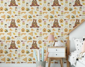 Honey Bee Bear Removable Wallpaper Cute Animal Wall Cling Etsy India